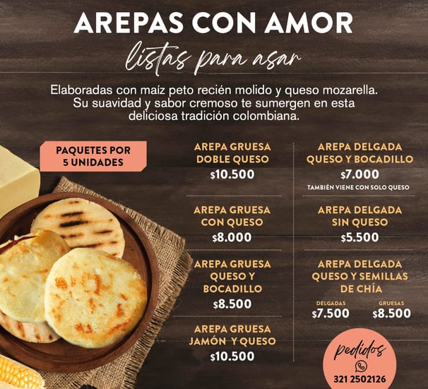 Fábrica de arepas de maíz en Bogotá, pedidos por WhatsApp.